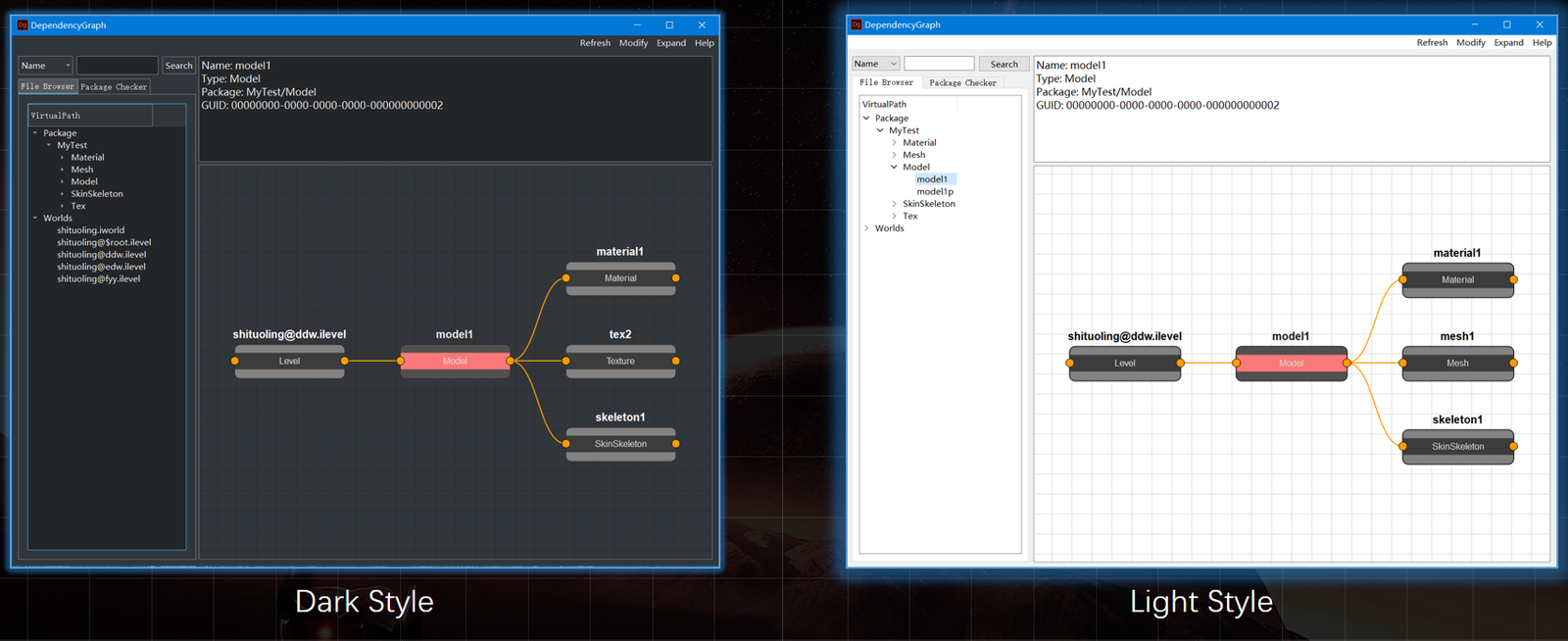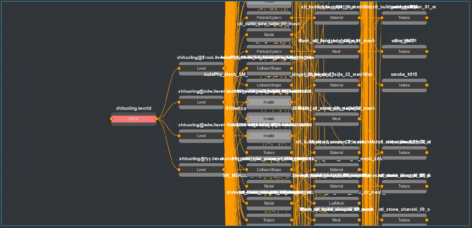 游戏中的Level,Model,Material,Texture,Mesh等资源之间会互相引用,产生依赖关系。这个关系可能是错综复杂的,不会像层级结构一样规范易用