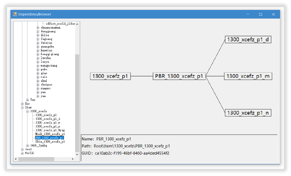 需求:工具以Messiah引擎为例,检查Messiah工程的资源依赖关系,将其可视化展示出来,并进一步操作