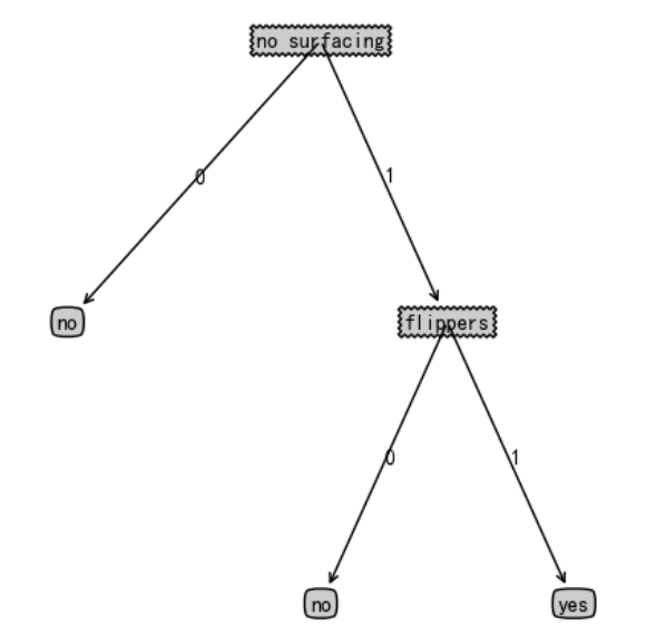 树:{'no surfacing': {0: 'no', 1: {'flippers': {0: 'no', 1: 'yes'}}}}