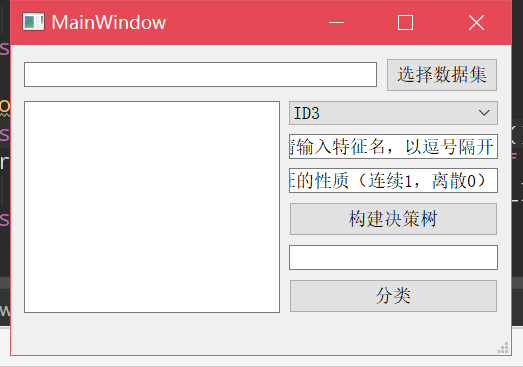 本系统在Windows平台下开发,编写可执行的Python脚本软件,主要分为ID3算法脚本、C4.5算法脚本,数据集测试脚本和UI脚本。