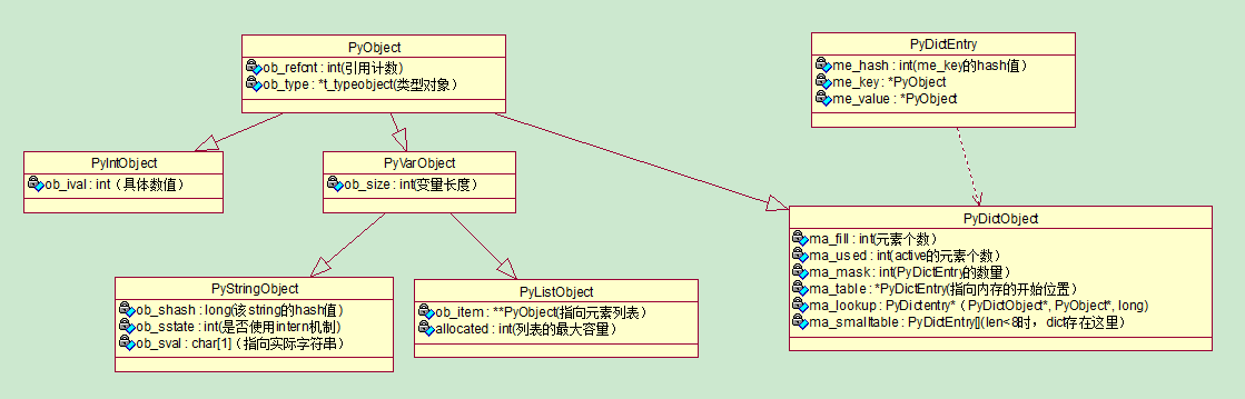 在python内部,每个对象都拥有相同的头部(PyObject_HEAD)。因此,PyObject* 可以引用任意一个对象,python内部传递的也是该泛型指针,至于所指对象究竟是什么类型,则由对象的ob_type域判断(由此实现多态)