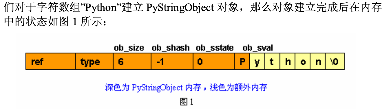 [stringobject.h]typedef struct {PyObject_VAR_HEADlong ob_shash; // 缓存该对象的 HASH 值,初始-1int ob_sstate; // 是否使用intern(共享短字符串)机制char ob_sval[1]; // char[]也是以'\0'结尾的,但因为size的存在其中间其实是可以出现'\0'的} PyStringObject;