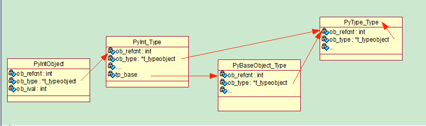 以int为例,定义PyInt_Type为int的类型,基于PyType_Type的PyTypeObject对象:
