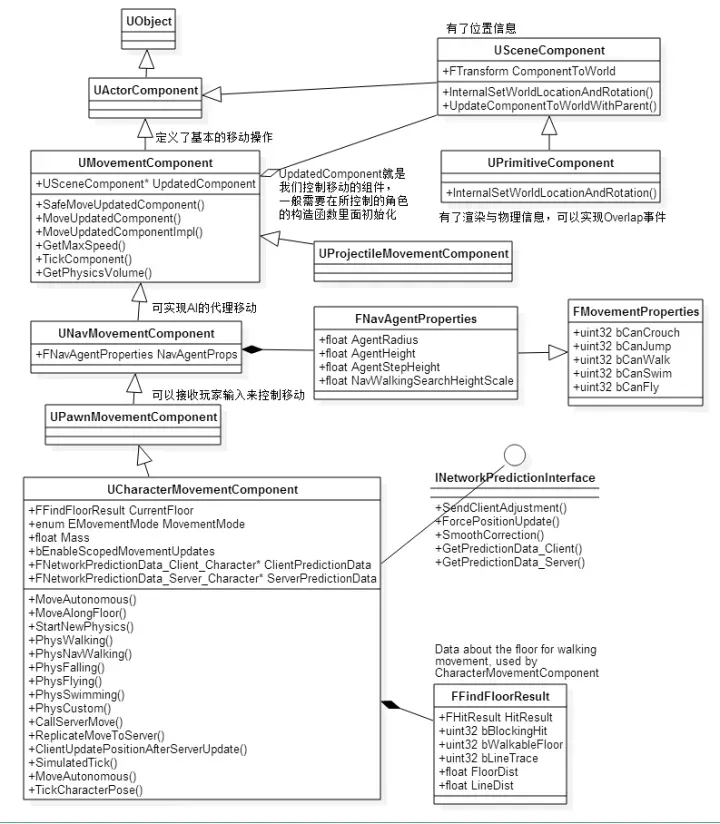 UNavMovementComp: This component is more to provide AI with the ability to find the way, and also includes the basic movement status, such as whether it can swim, whether it can fly, etc.