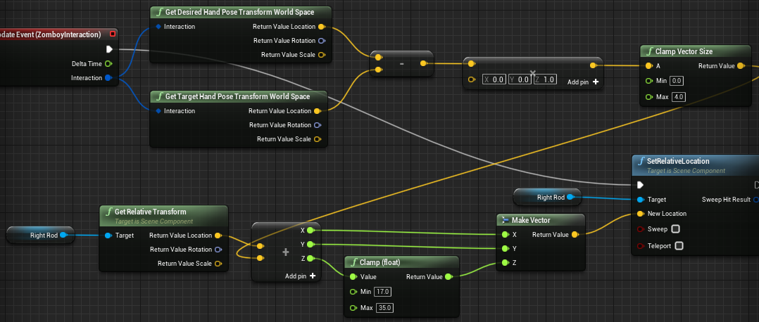 更进一步,由于只是ClampVectorSize无法限定交互物移动的范围,所以我们还要对交互物最终的Location进行一下Clamp: