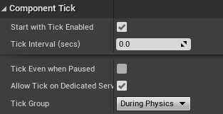 EventBeginPlay: SetTickEnabled False, SetTickGroup: PostPhysics